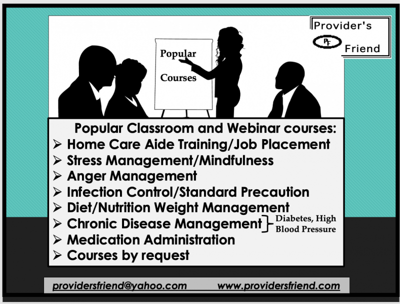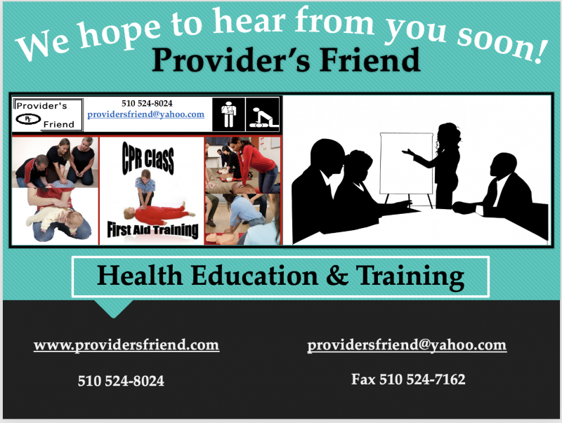 Provider's FriendPO Box 1707El Cerrito, CA 94530United Statesph: 510 524-8024fax: 510 524-7162providersfriend@yahoo.com